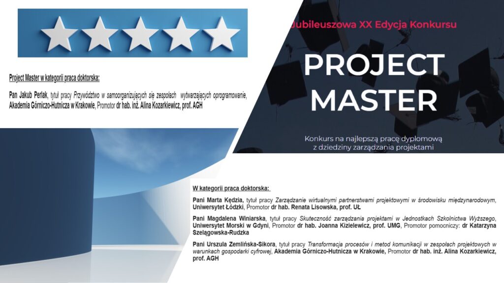 Serdeczne gratulacje dla moich doktorantów za ich sukces w konkursie IPMA Project Master!